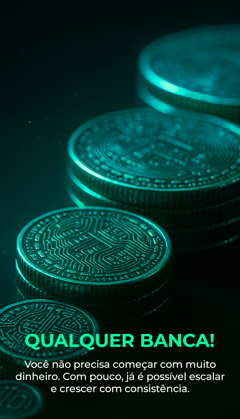 Não importa se você começa pequeno ou grande, você vai aprender a aplicar o método de forma escalável. Vou mostrar técnicas para crescer sua banca de forma consistente e segura.
